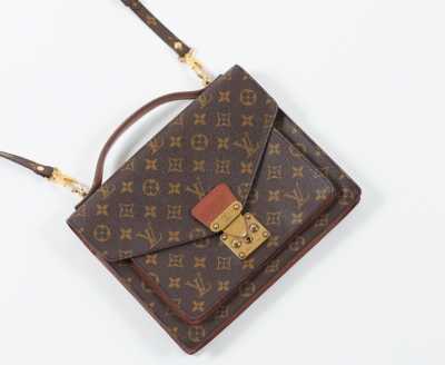 Sac "Monceau" en cuir et toile enduite Monogram, avec bandoulière, fermoir et attaches en métal doré, 23 x 28 cm.
