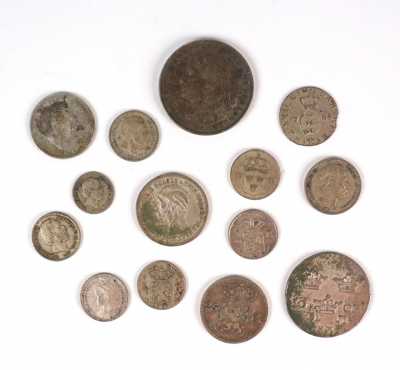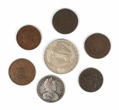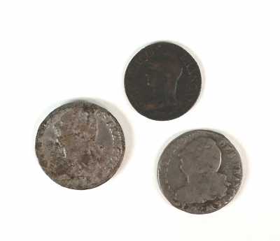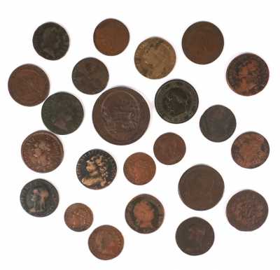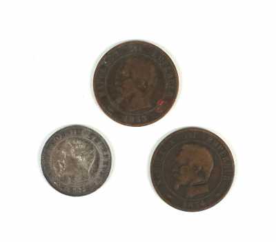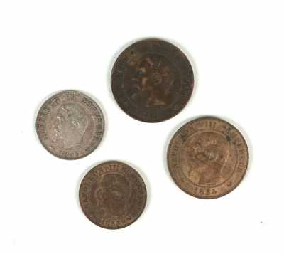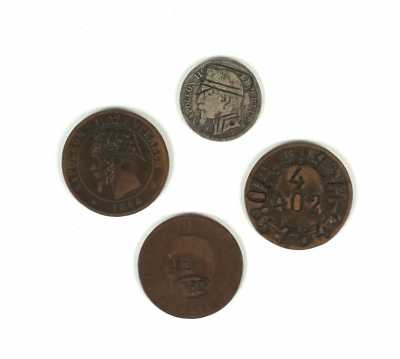 - Sols Louis XVI x2 , 8 Doubles Guernesey 1864, Demi Penny Victoria 1846.