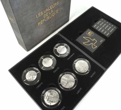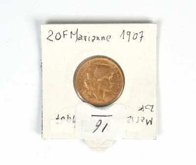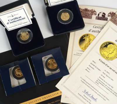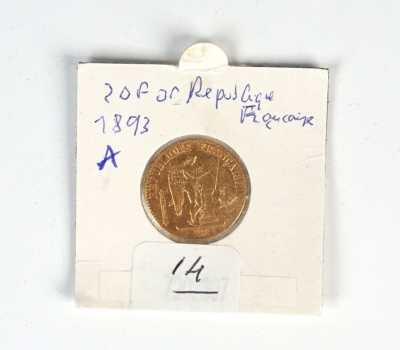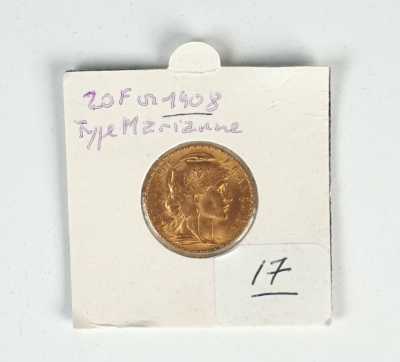 2014 Coq 1er type + 15 € 2008 Semeuse + 2 x 20 € 2017 Marianne.