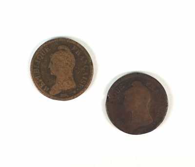 - Un Décime dont An 7 A et An 7 D / 1 surfrappe du deux décimes An 5 A,