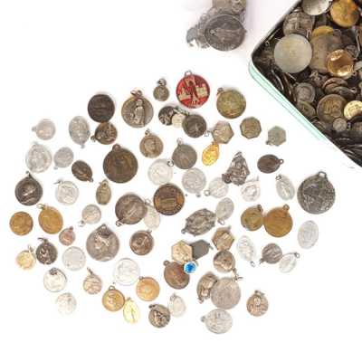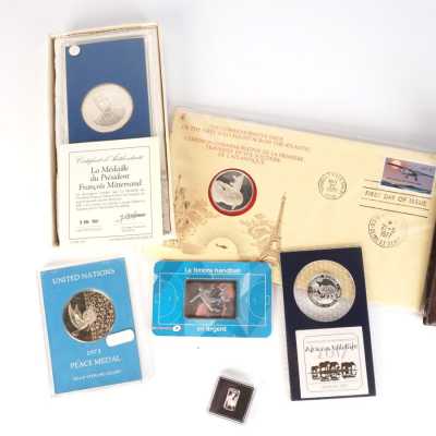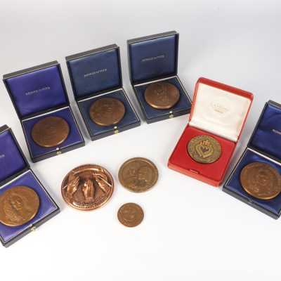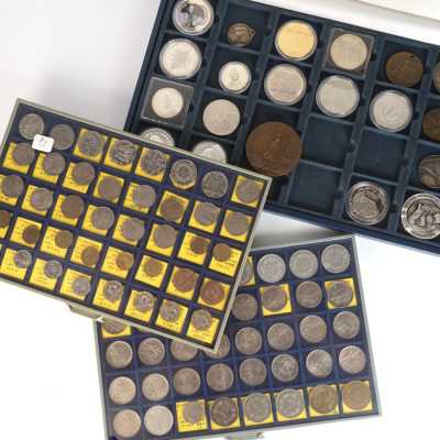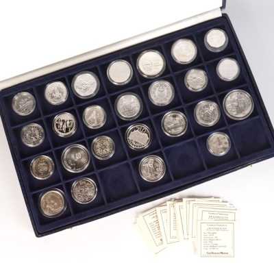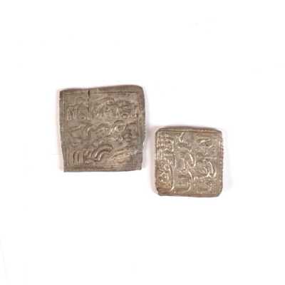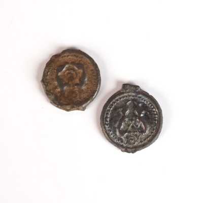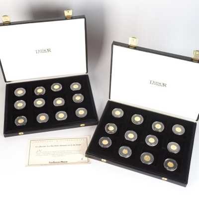 - Toutânkhamon, Nefertiti, Argent 999/oo avec incrustations de pierres précieuses, Poids brut total des 2 : 186,6 g environ, D. 76 mm...