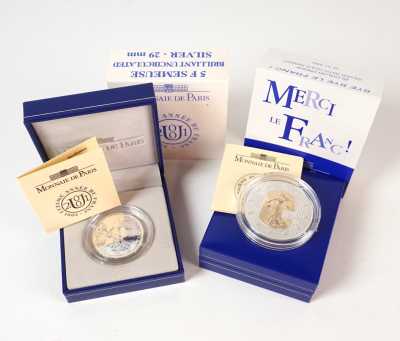 - 5 Euros argent et insert or, Belle Epreuve, "Merci le Franc !" 2002