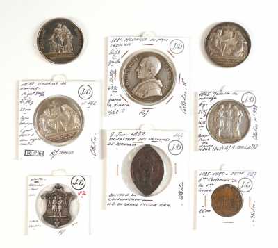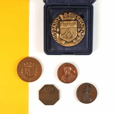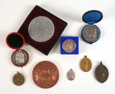 On joint 3 médaillettes en métal dont : Nantes, 8e Centenaire de la 1e Croisade, Monastère des Ursulines de Pér...