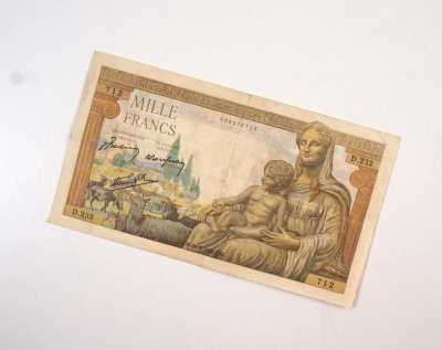 - BANQUE DE FRANCE : 1 000 Francs "Déesse Déméter", 5.11.1942 coupé