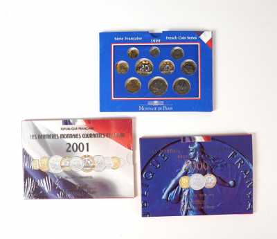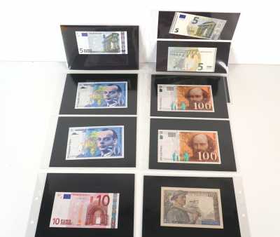 On joint 3 pochettes pour billets et une dizaine d'étuis individuels pour monnaies.
