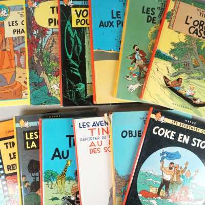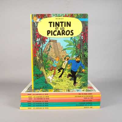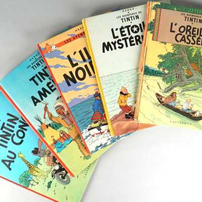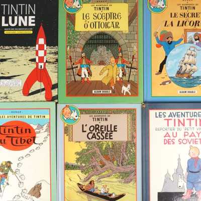 - 5 albums doubles comprenant Objectif Lune / On a marché sur le Lune, Le sceptre d'Ottokar / L'affaire Tournesol, Le secret de Licorne / Le trésor Rackham Le Rouge, Tintin au Tibet / Les b...