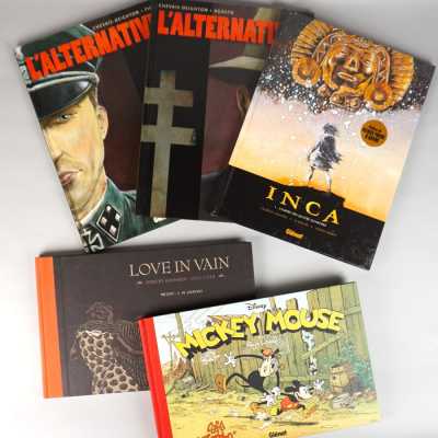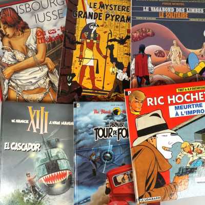- BLAKE ET MORTIMER, éd. BLAKE ET MORTIMER, 4 albums : "La marque jaune", "L'affaire Francis Blake", "La malédiction des trente deniers (tome 1)" et "L'affaire du collier" (petit format) ;