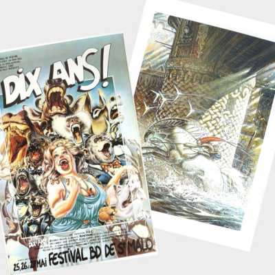 - Enki BILAL (1951), "le nom de la rose : moines", impression signée dans la planche en bas à droite, 20 x 37 cm ;