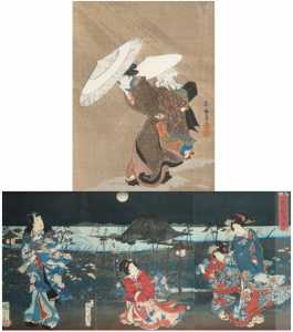 Et une impression réhaussée d'après Kitagawa Fujimaro titrée " Beauty in the snow ",30 x...