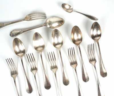 - 5 couverts à entremet, modèle uniplat, L. 18 cm.