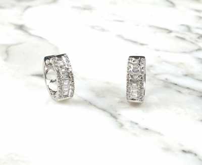 Présenté avec sa chaîne maille forçat en or blanc 18 K (750/oo), L. 40 cm.