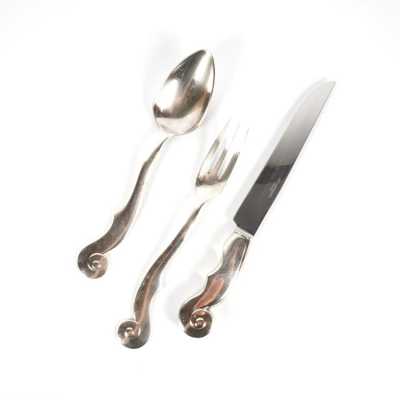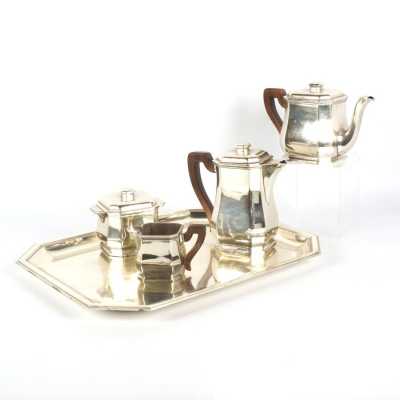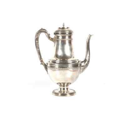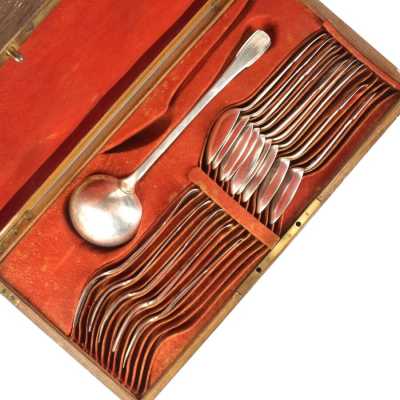 - Louche en argent, poinçon Minerve 1er titre, poinçon de MO "EP", le différend difficilement lisible, à décor Art Déco