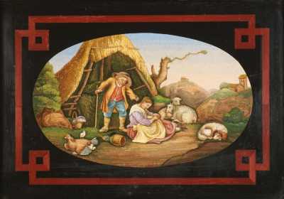 H. 36 cm, L. 40 cm (usures, quelques rayures d'usage).