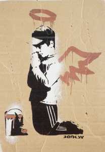 Art gratuit de la peinture en aérosol au pochoir semé au parc à thème de Banksy "Dismaland" qui s'est ...