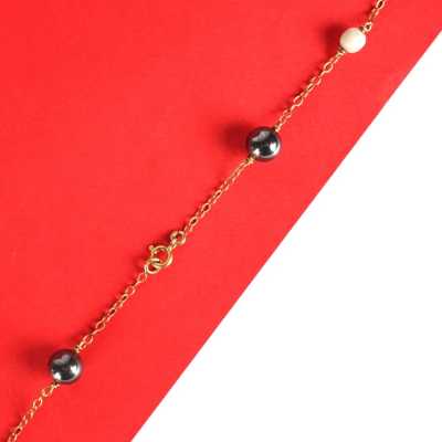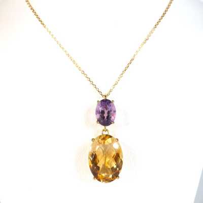 - Collier, maille forçat, retenant une grappe de boules d'ambre, fermoir à anneau ressort, L. 44 cm. L. Pendentif : 4.3 cm.