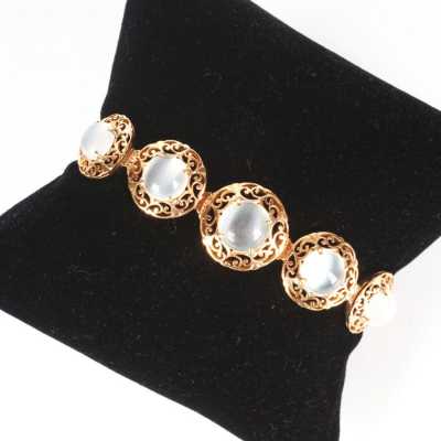 - Bracelet articulé composé de 8 maillons de forme libre sertis chacun d'u...