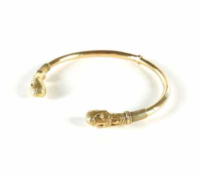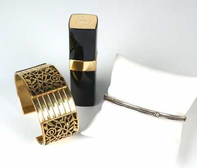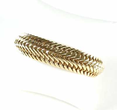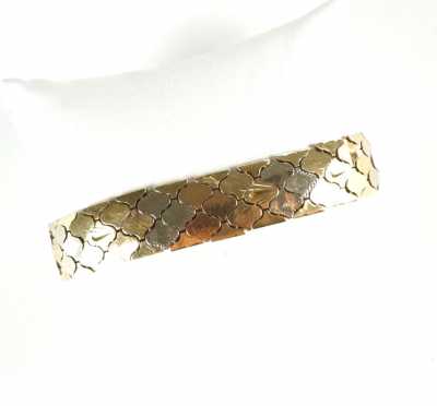 - un bracelet "Manchette" en métal doré à décor de fleurs, 7.2 x 5.2 cm, Lar. 3 cm.