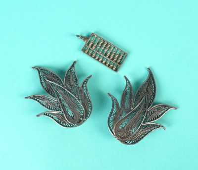 - un bracelet "Jonc" en argent (800/oo), orné de fleurettes et d'une ligne torsadée, D. 7.2 cm. (AC).