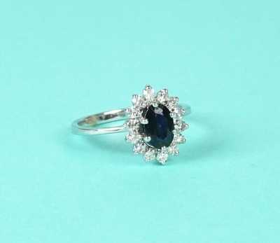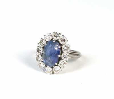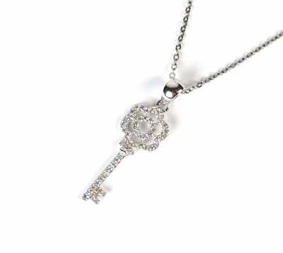 Présenté avec sa chaine en or blanc 18K (750/oo), maille forçat, fermoir mousqueton, L. 40 cm.