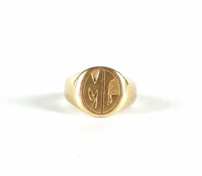 - une bague "Chevalière", plateau ovale non gravé (usures, anneau déformé). TDD 51-52.