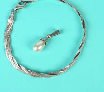 - un pendentif perle, la bélière en argent (800/oo), H. 2.5 cm.