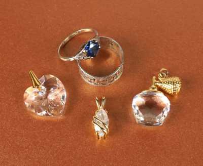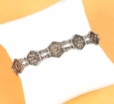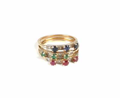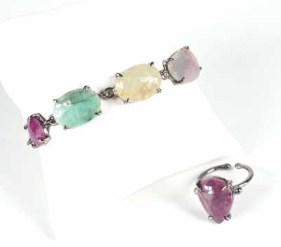 - un bracelet souple serti de 6 pierres de couleurs de différentes formes, L. 17 cm environ.