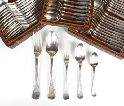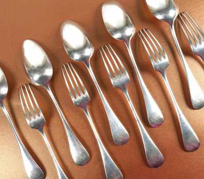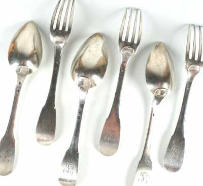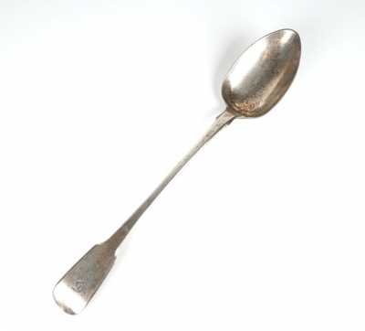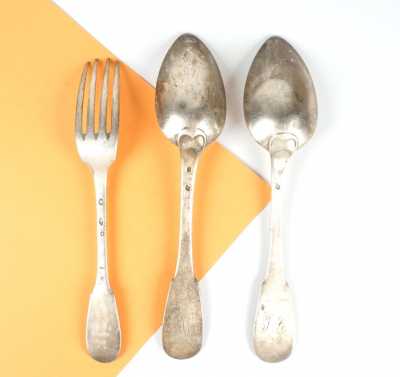 - une fourchette poinçon 2e coq 1er titre (1809-1819), modèle uniplat, monogrammée "JB".