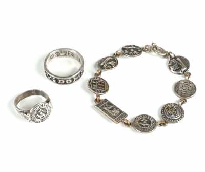 - une bague ouverte sertie d'une pierre violette. TDD 56 environ (ajustable).