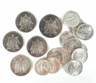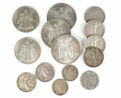 - 13 x 5 Francs Semeuse 7 x 1960, 2 x 1961, 1 x 1962 et 3 x 1963.