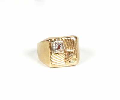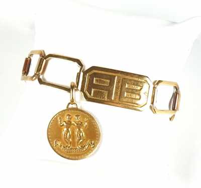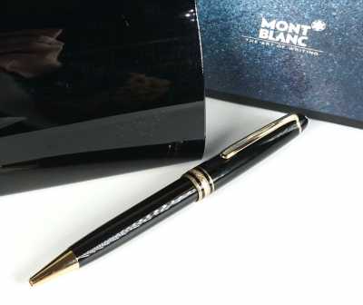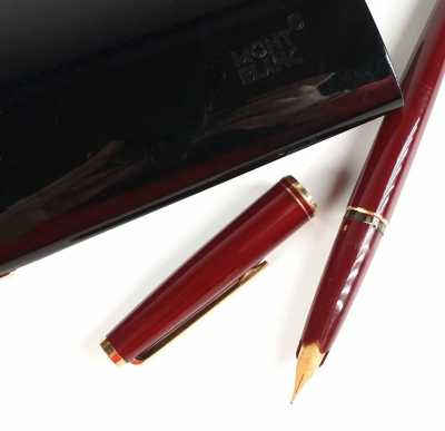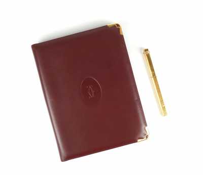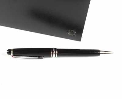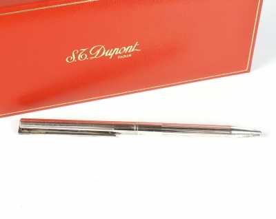 Présenté avec son crayon en plaqué or, à décor géométrique, le bouchon agrémenté des 3 anneaux entrelacés, signé, L. 13 cm.