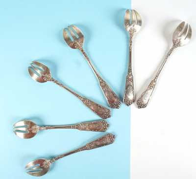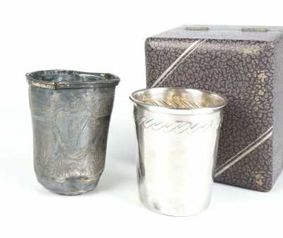 Présentés dans une boite en métal à décor de chérubins et enroulements feuillages, 9.5 x 6.5 x H. 4.5 cm.