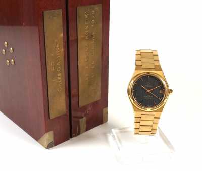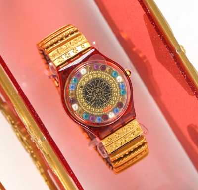 Présentée dans un écrin formant une boîte rouge en plexi transparent, avec livret.