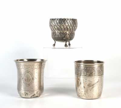 On joint un petit pot tripode en argent, poinçons styl...