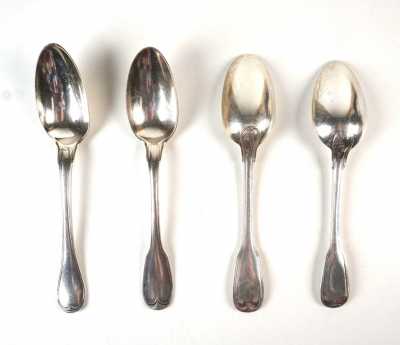 - 2 cuillères, poinçons aux Fermiers Généraux, 18e siècle, L. 21 cm.