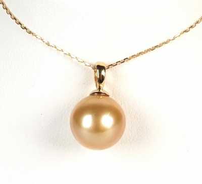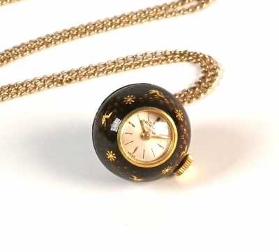 Présenté avec sa chaîne maille forçat en or jaune 18 K (750/oo), L. 45 cm.