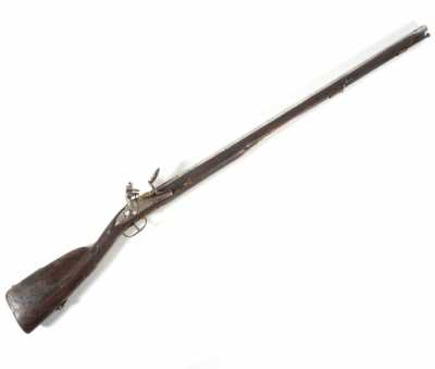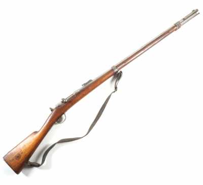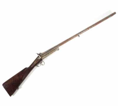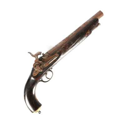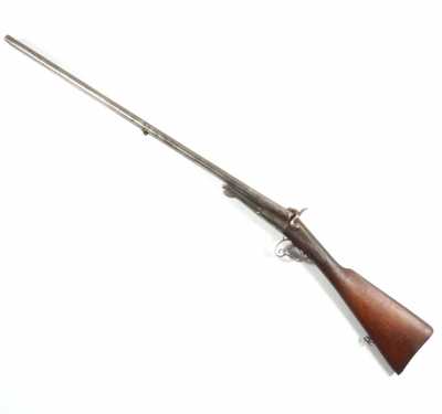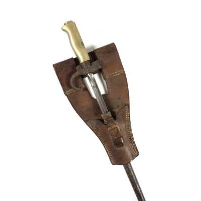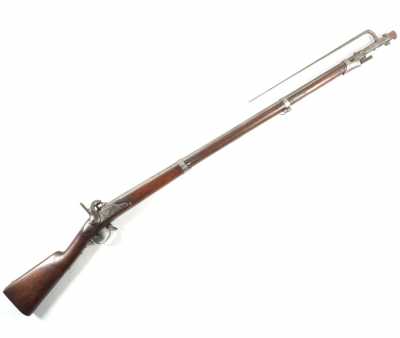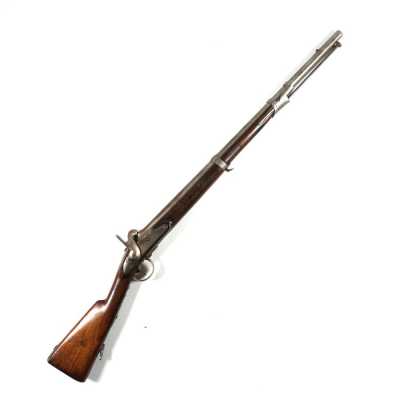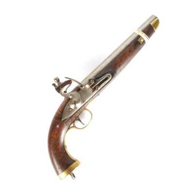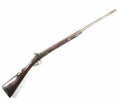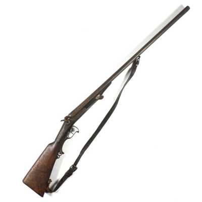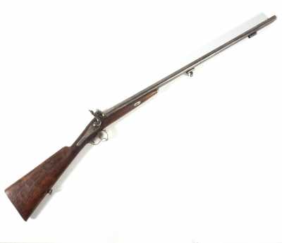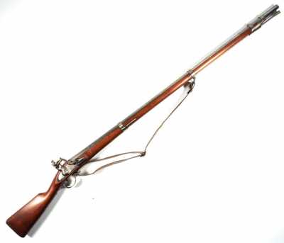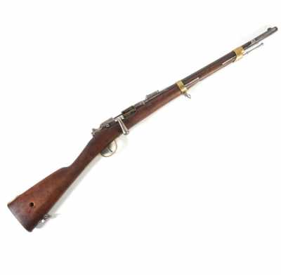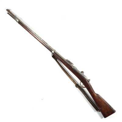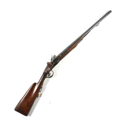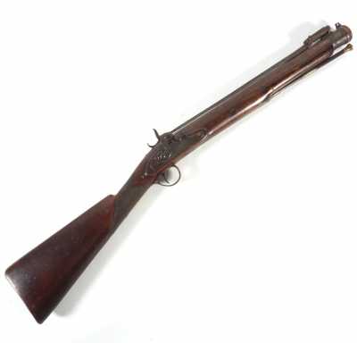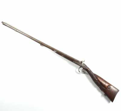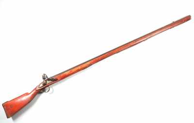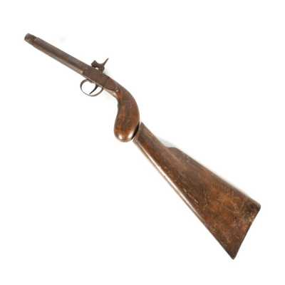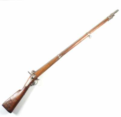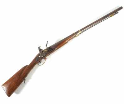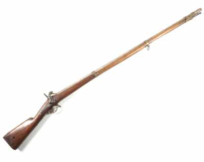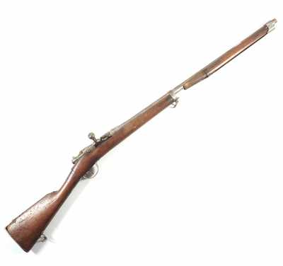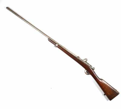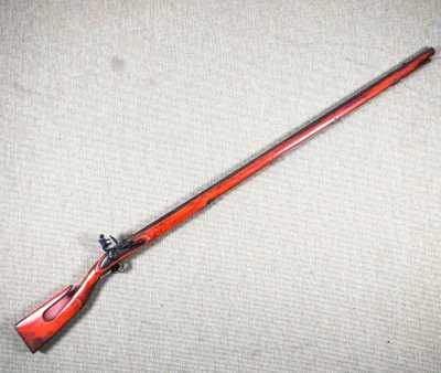 de 133 cm à pans au tonnerre, garnitures en laiton, monture en bois à long fût teinté rouge modifié, baguette en bois non conforme, fonct...