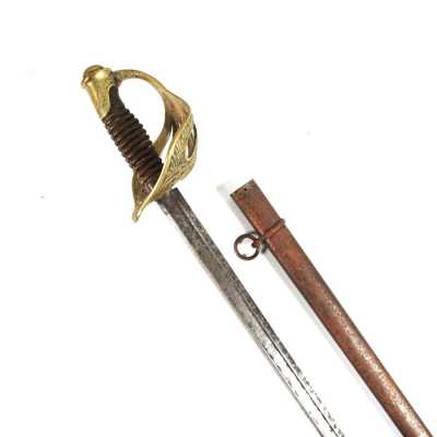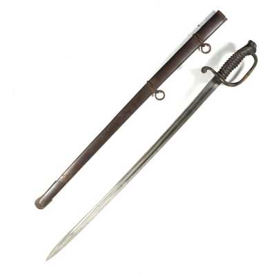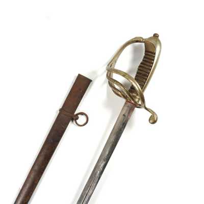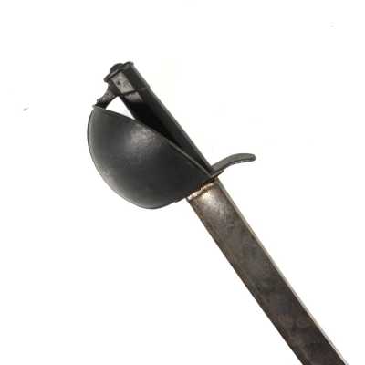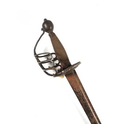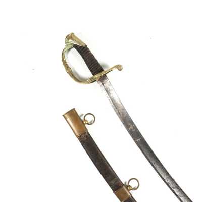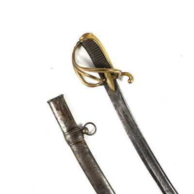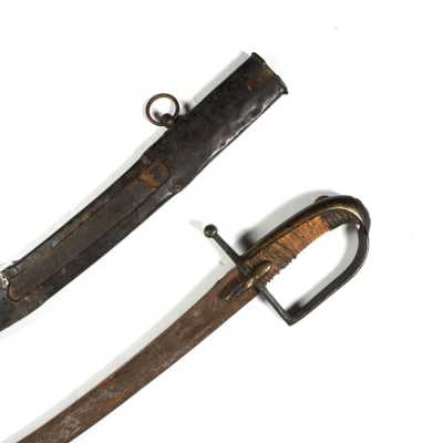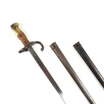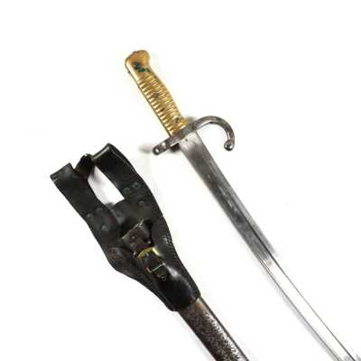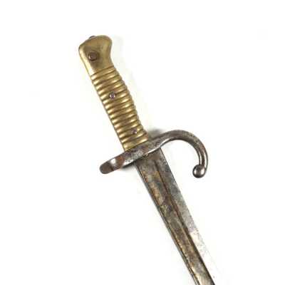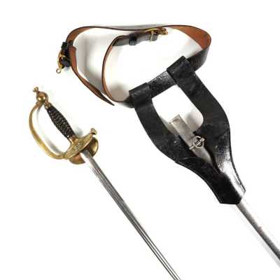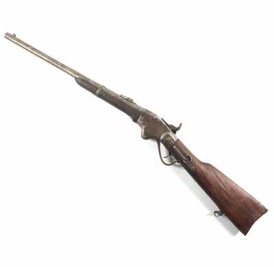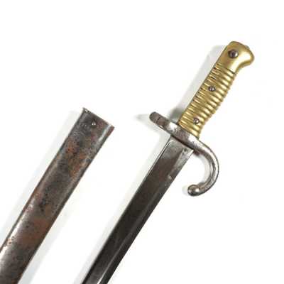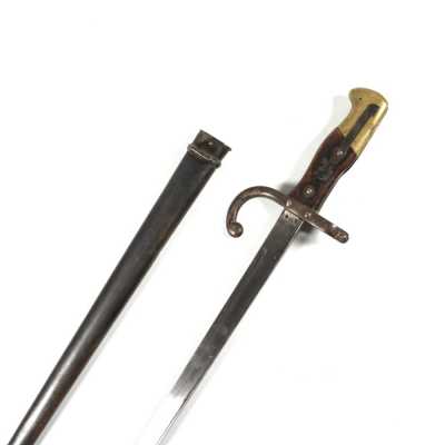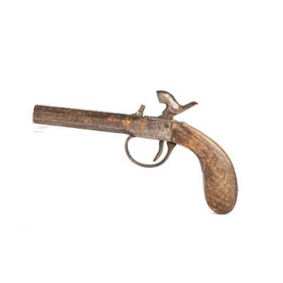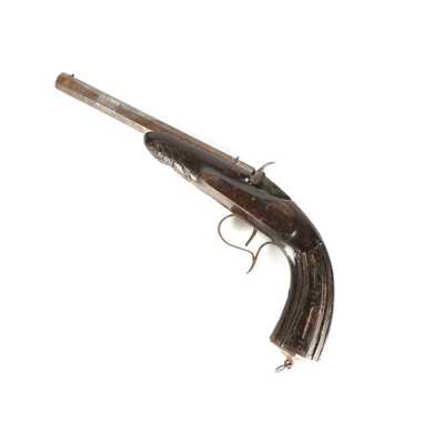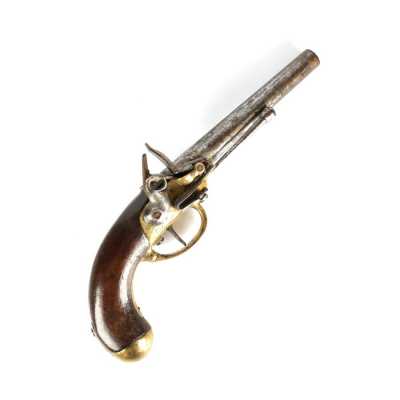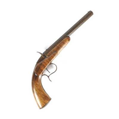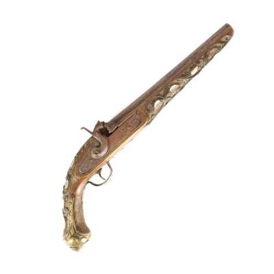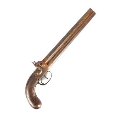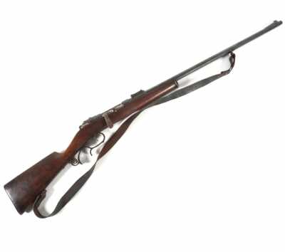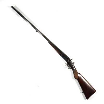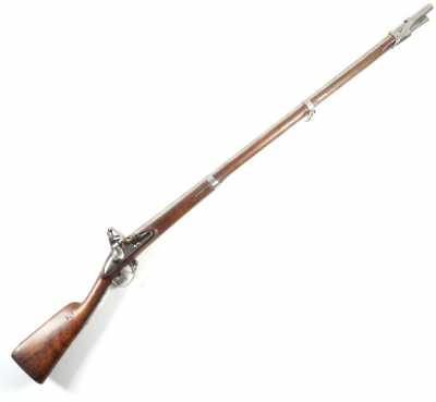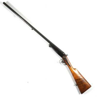 de 133 cm à pans au tonnerre, garnitures en laiton, monture en bois à long fût teinté rouge modifié, baguette en bois non conforme, fonct...