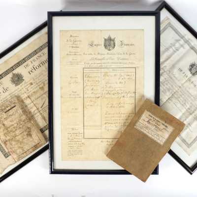 RESTAURATION - CONGE DE REFORME, décerné en 1814, vignette, cachet humide, nombreuses ...