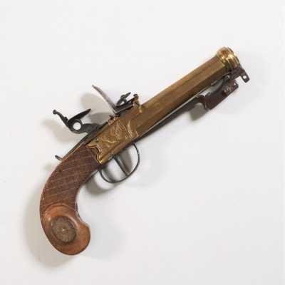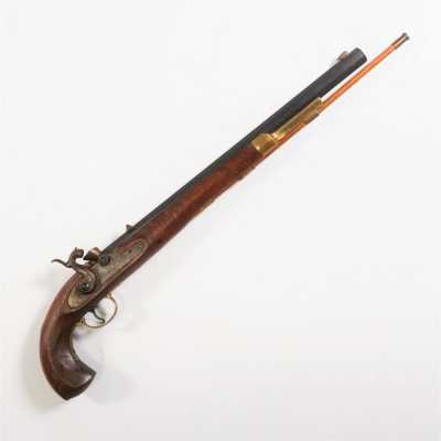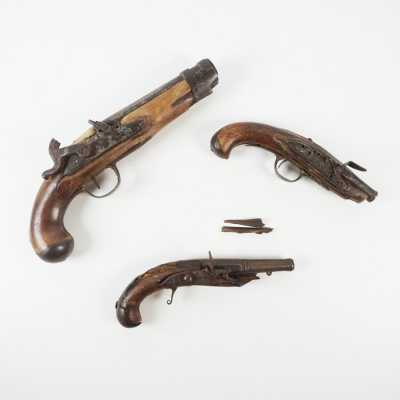 On joint un PISTOLET A SILEX TRANSFORME A PERCUSSION, accidents et manques, longueur : 27,5 cm, DANS L'ETAT.