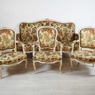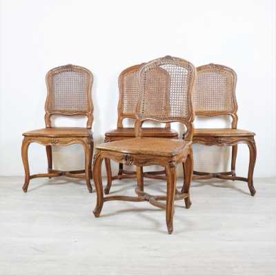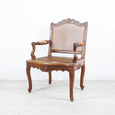 On joint une chaise du même décor, assise et dossier canné...