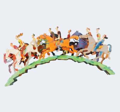 David GERSTEIN (1944), "Morning ride" 1996, sculpture en tôle peinte, avec clé, 116 x 58 cm.