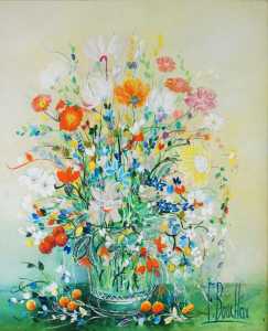François BOUCHEIX (1940), "Bouquet de fleurs" 2004, huile sur toile signée en bas à droite, contresignée et datée au dos, 55 x 46 cm.