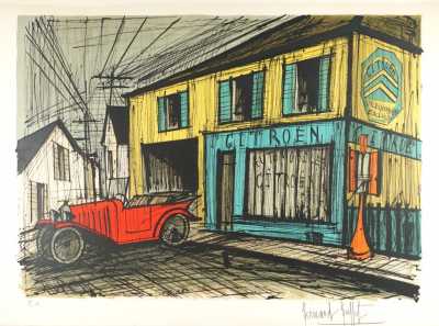 Bernard BUFFET (1928-1999), "Citroën", lithographie couleurs, justifiée épreuve d'artiste (E.A) en bas à gauche, signée au crayon en bas à droite dans la marge, 47 x 66 cm.