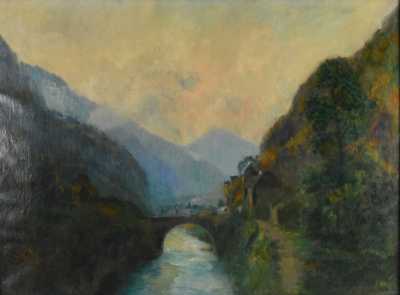 Albert Marie LEBOURG (1849-1928), "Le Rhône à St Maurice", huile sur toile signée en bas à droite, porte diverses étiquettes au dos, 59 x 78.5 cm.