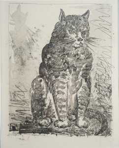 D'après Pablo PICASSO (1881-1973), "Le Chat", aquatinte en noir sur papier filigrané Vollard, Pl. pour Buffon, Histoire naturelle, Paris, Fabiani, 1942, non signé, 36 x 26 cm.