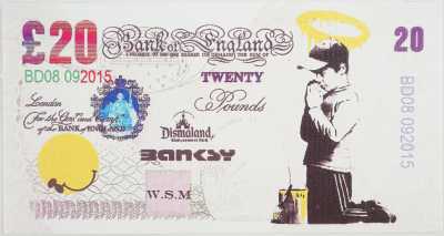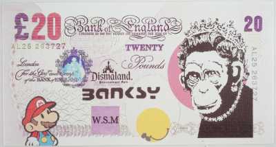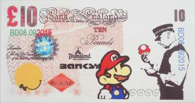 * L'oeuvre est présentée avec le ticket original d'entrée et la Map Dismaland.