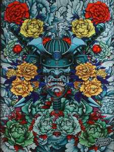 Tegmo est artiste urbain français né en 1985. Il a commencé par coller petit à petit, dans la rue des formes géométriques simples voir très éclatées, accompagnées de plantes...