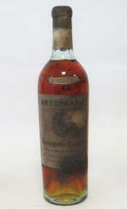 45° - 70 cl. Et. un peu fanée et un peu tachée (1 accroc). N : mi/bas épaule.