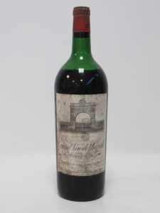 Et. très fanées et tachées (lisibles). Surcapsulage. Jupe de la caspsule découpée par l'expert pour vérification. N : tout en haut épaule.