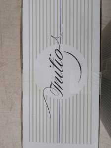 Et. fanée, un peu tachée et un peu déchirée. N : mi épaule.